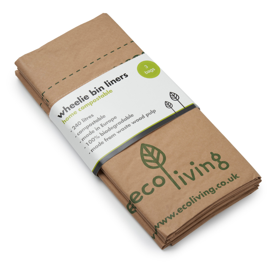 3 stk. af jarðgeranlegum 2ja laga pappírspokum með rakavörn sem rúma 240 ltr. Hannaður með það fyrir augum að passa í stórar tunnur sem taka á móti matarafgöngum og sambærilegu. Pokinn er úr kraftpappír sem framleiddur er í Evrópu úr afgangs timburmassa og afskurði.