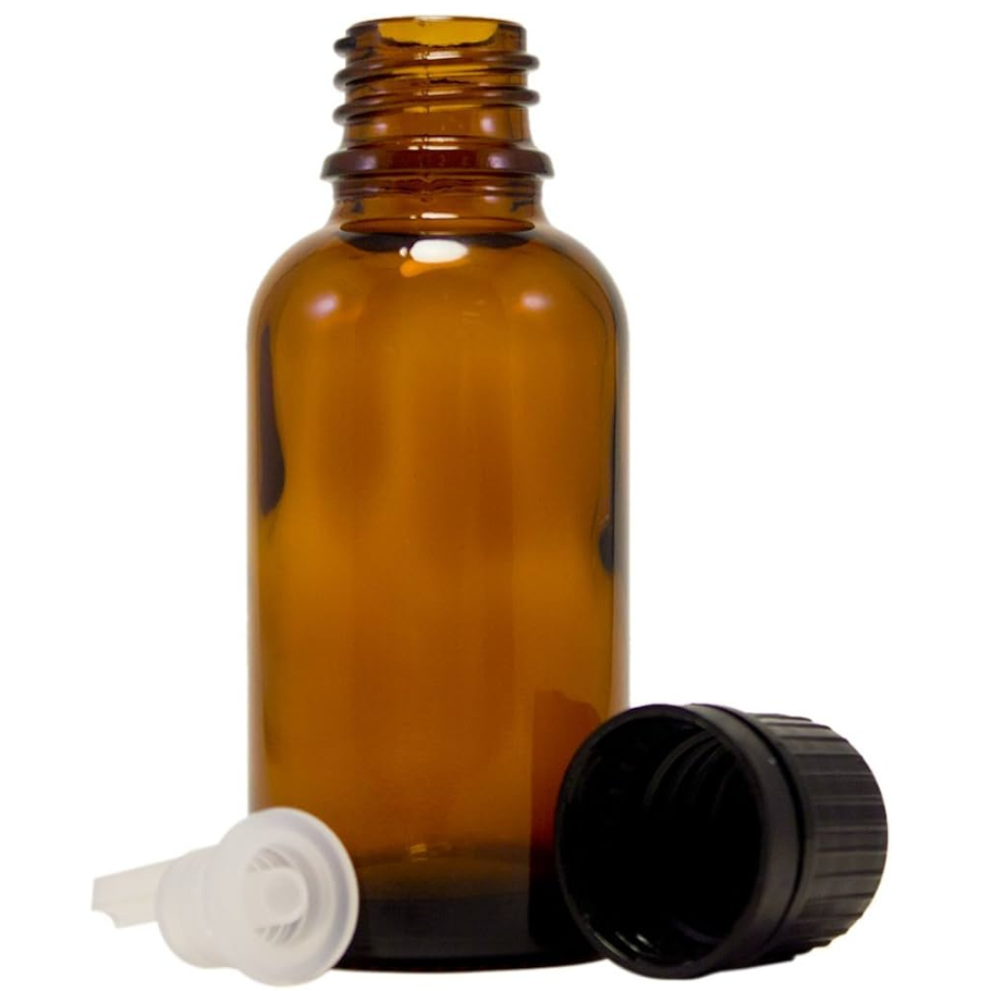 30 ml amberlituð (brún) glerflaska. Kemur með dropateljara og loki úr plasti en að auki er hægt að fá pípettu fyrir 30 ml glös hér.