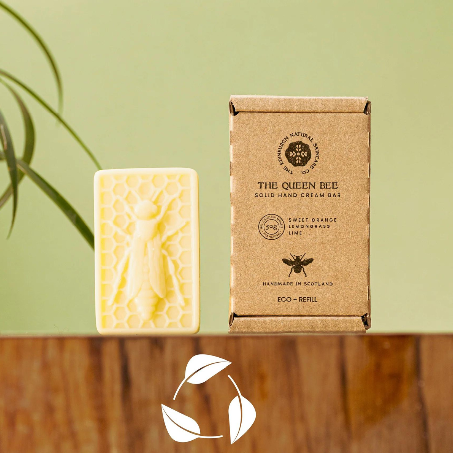 The Queen Bee handáburðurinn er í föstu formi og framleiddur úr bestu náttúrulegu innihaldsefnunum sem endurnýja og vernda hendurnar frá úlnlið og fram í fingurgóma. Handáburðurinn kemur í fallegri, léttri og endurnýtanlegri málm öskju. Hann er einfaldur og snyrtilegur í notkun, þægilegur að ferðast með og gott að vera með á sér til að mýkja og vernda hendurnar.
