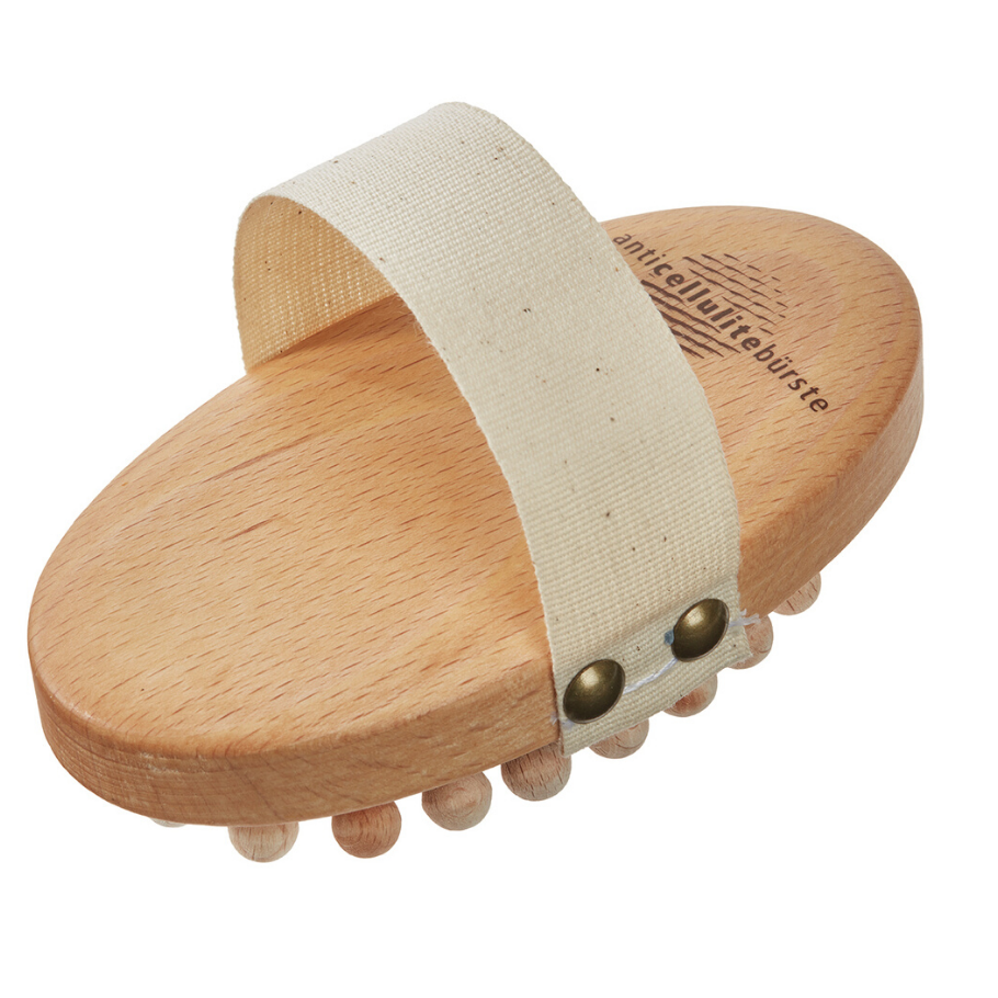 Burstinn er úr olíubornu beyki og með bómullarbelti sem auðveldar að halda á burstanum. 38 viðarpinnar sjá svo um nuddið. FSC 100%*