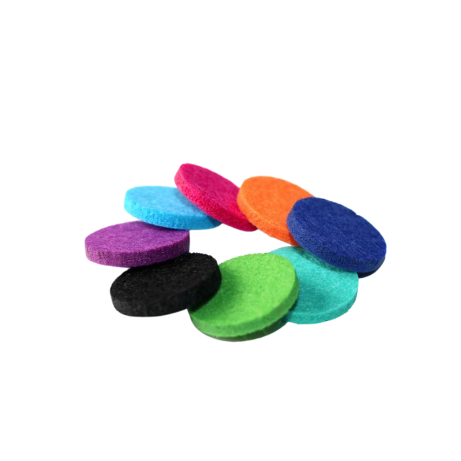 Pakki af filt púðum í nokkrum mismunandi litum fyrir bíla ilmdreifarann okkar. Bjartir og skemmtilegir litatónar sem sem gera lífið litríkara.