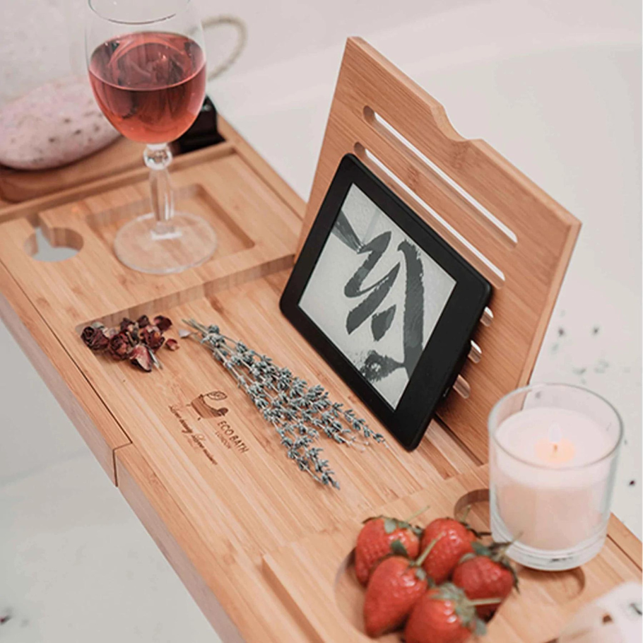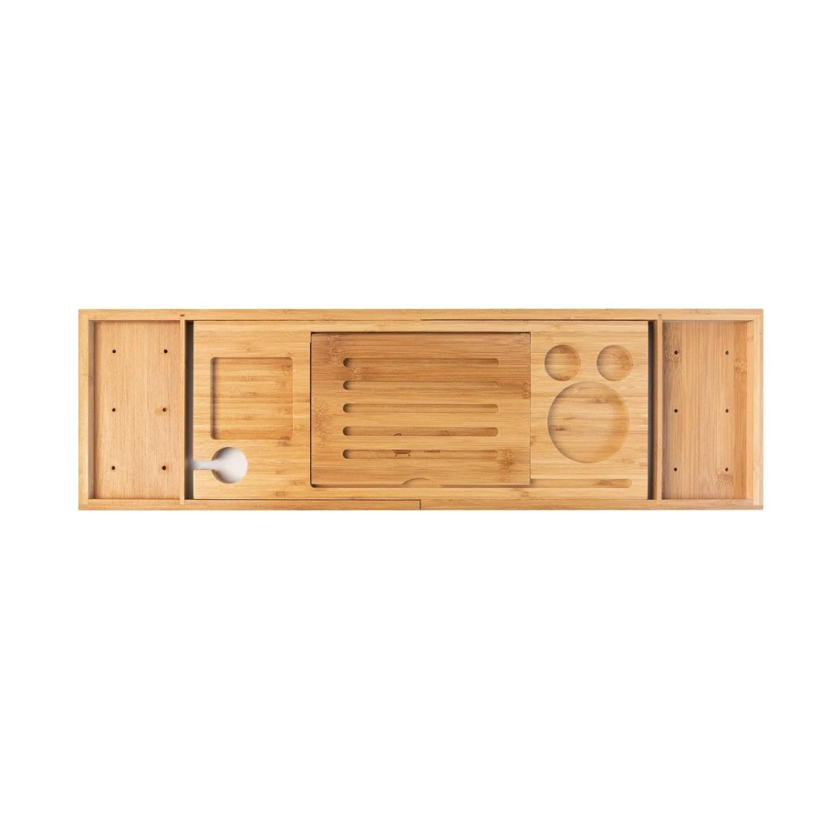 Hvernig væri nú að dekra við sig með þessu fallega og margþátta baðbretti og gera baðtímann að sannkölluðum lúxus tíma. Með þessu stækkanlega bretti geturðu haft allt við höndina, glasið, kertið, bók eða bókbretti, spjaldtölvu og lengt baðtímann svo um munar. Það eina sem þarf að gera er að skrúfa frá heita vatninu endrum og sinnum svo að vatnið verði ekki kalt. Já, og setja smá baðsalt.