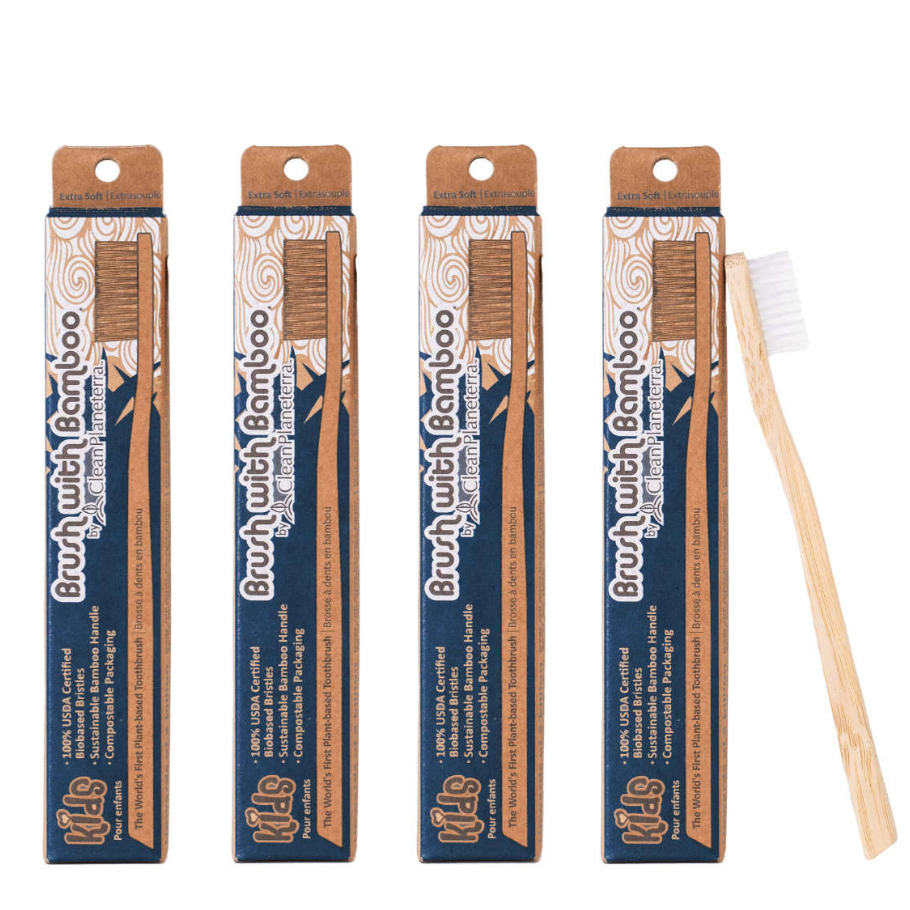 Bambustannbursti - Xtra mjúk burstahár. Barna. 4 stk.