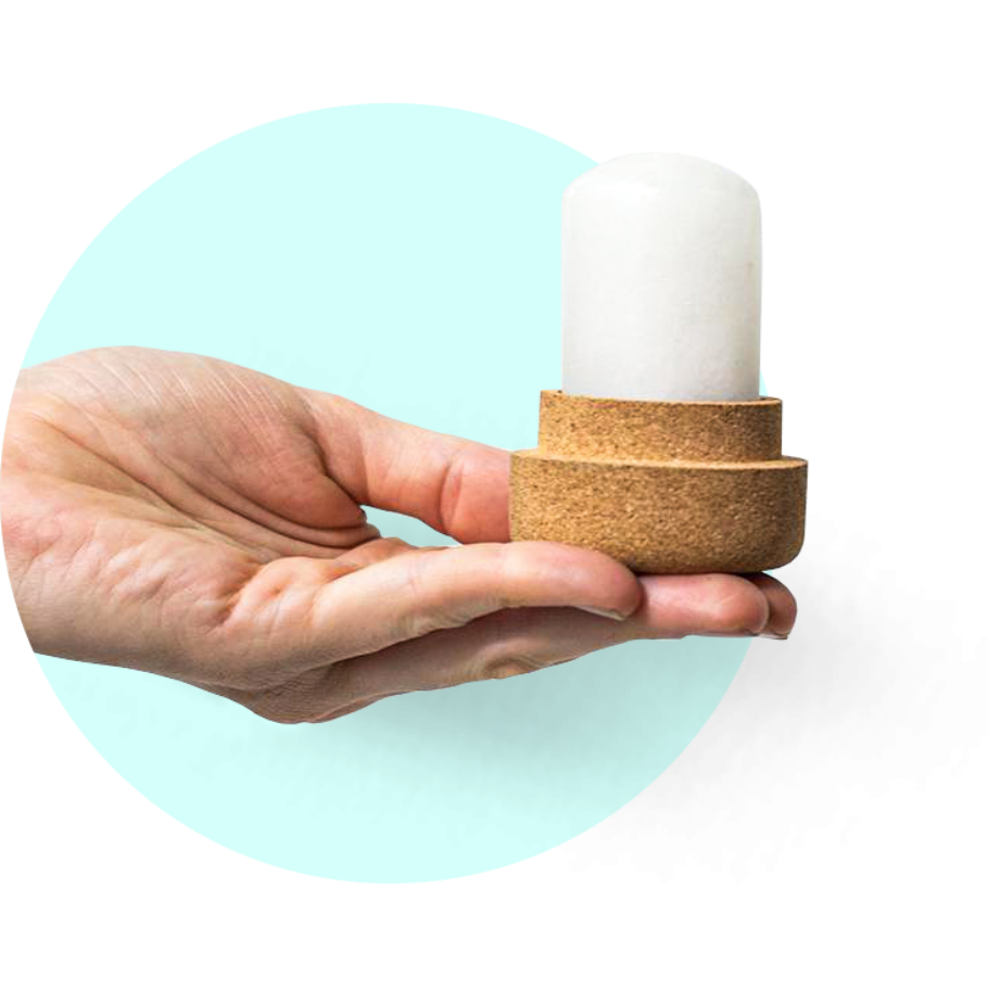 Notkun: Lokið er togað eða snúið af, bleytið kristalinn með því að snúa honum aðeins niður svo að sem minnst vatn fari á korkinn (þannig endist hann lengur) og nuddið undir hendur. Skolið síðan kristalinn og skiljið hann eftir opinn til að hann þorni.