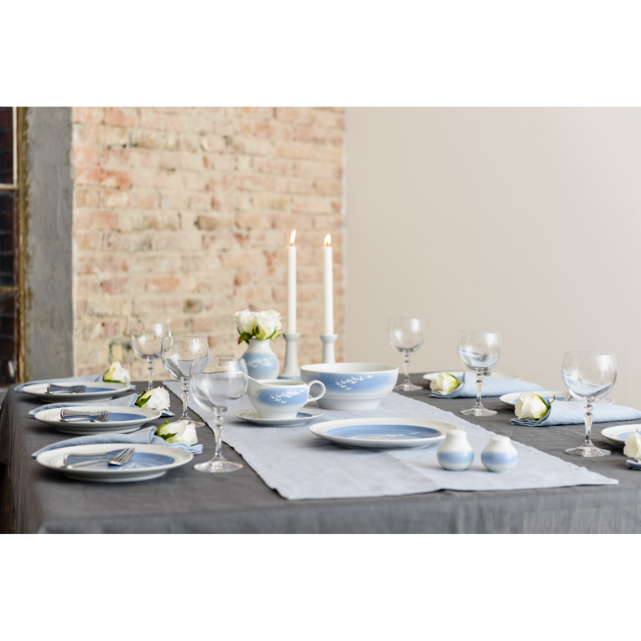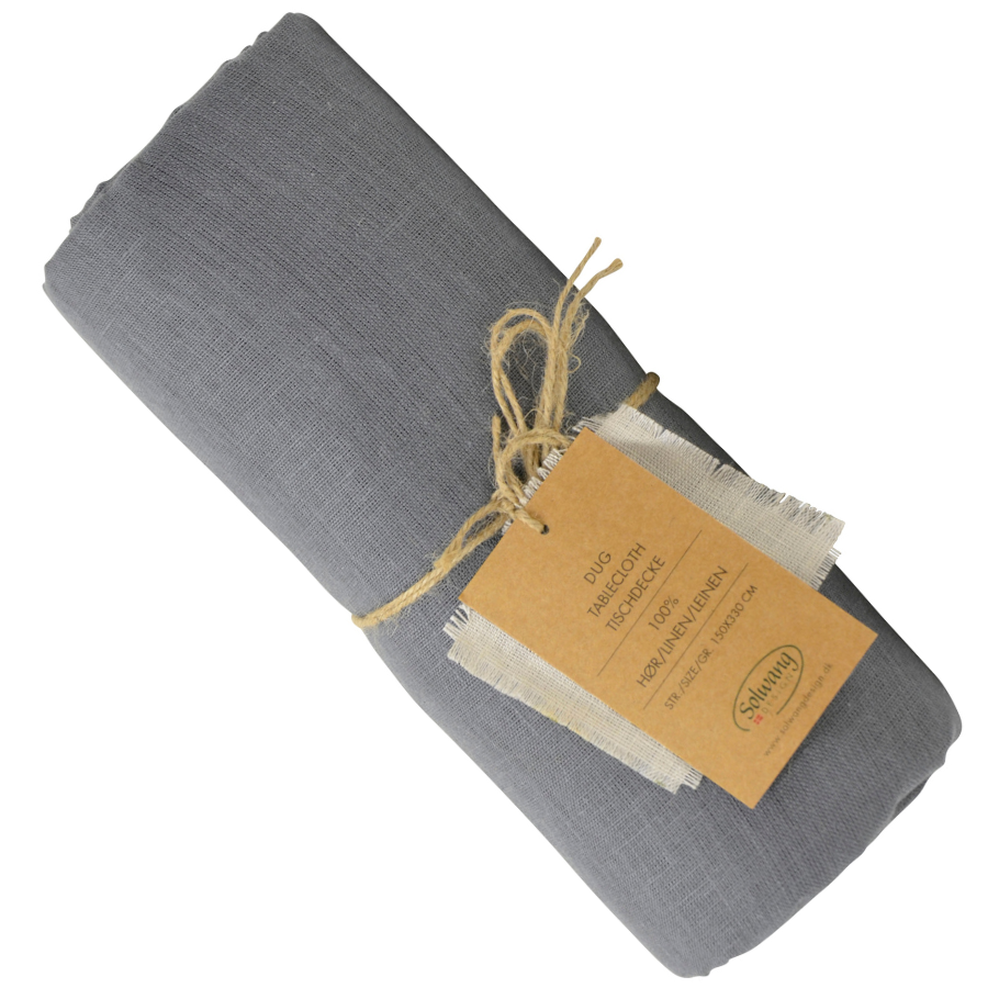 Dásamlega fallegur borðdúkur ofinn úr hör, sérstaklega meðhöndlaður til að hrinda frá sér óhreinindum.