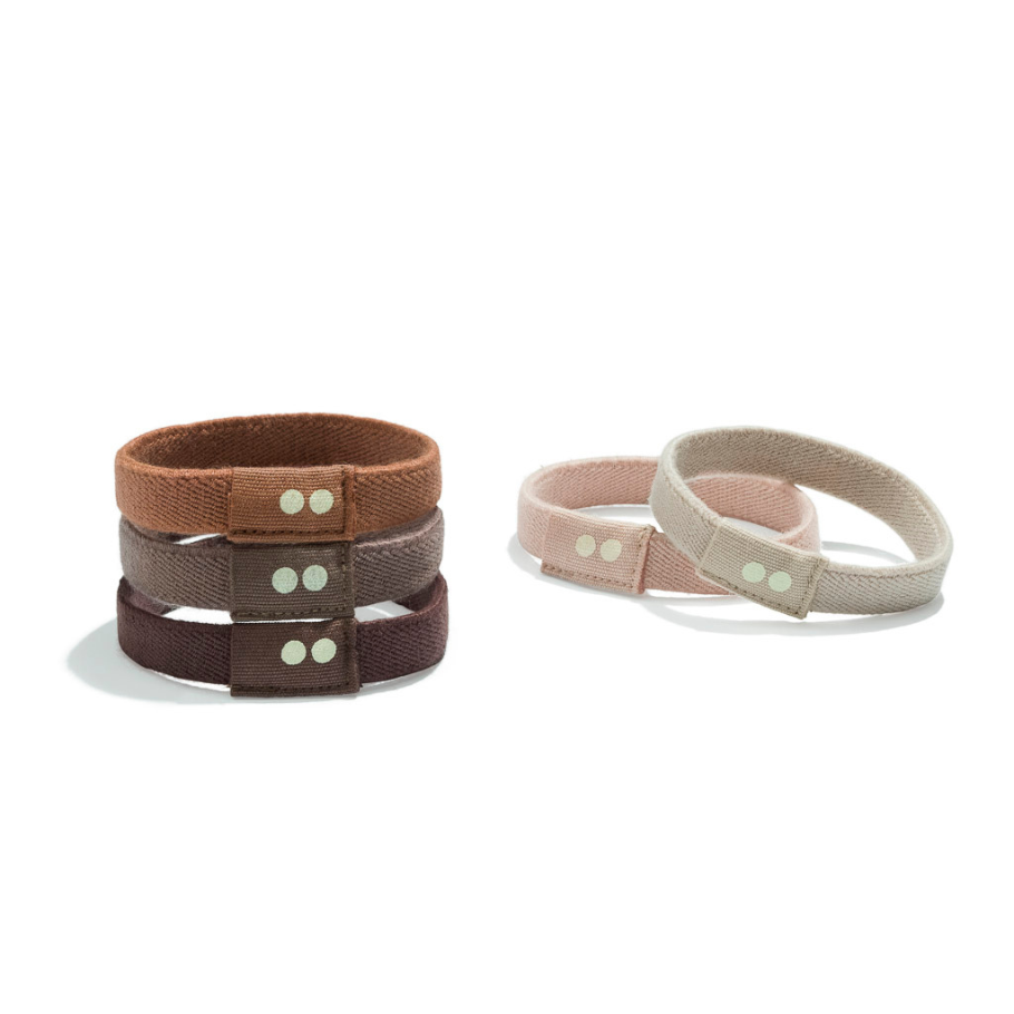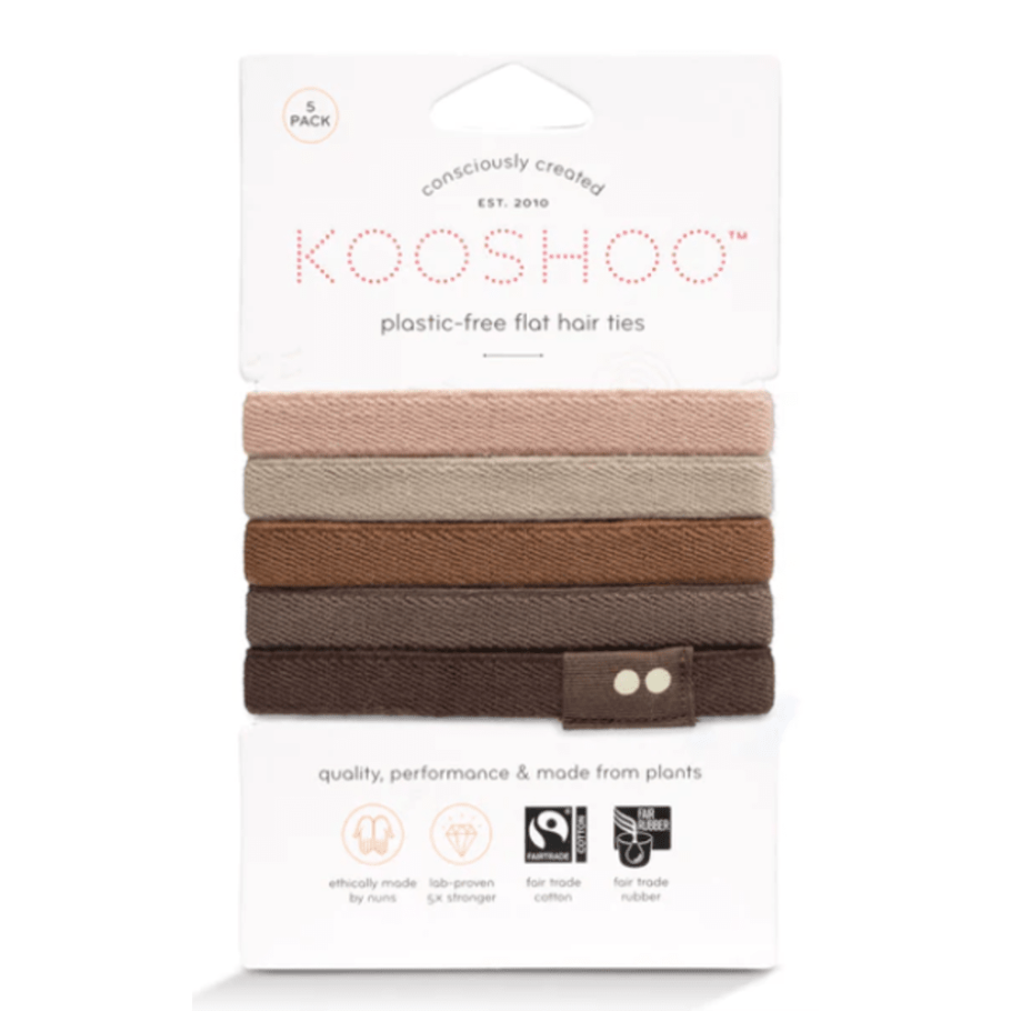 Umhverfisvænar hárteygjur frá Kooshoo, lífræn bómull og náttúrulegt gúmmí, ekkert plast. Teygjurnar rífa ekki í hárið, eru lífbrjótanlegar og þegar þær eru ekki í hárinu þá líta þær vel út á úlnliðnum.