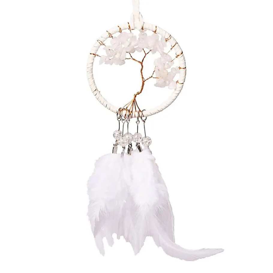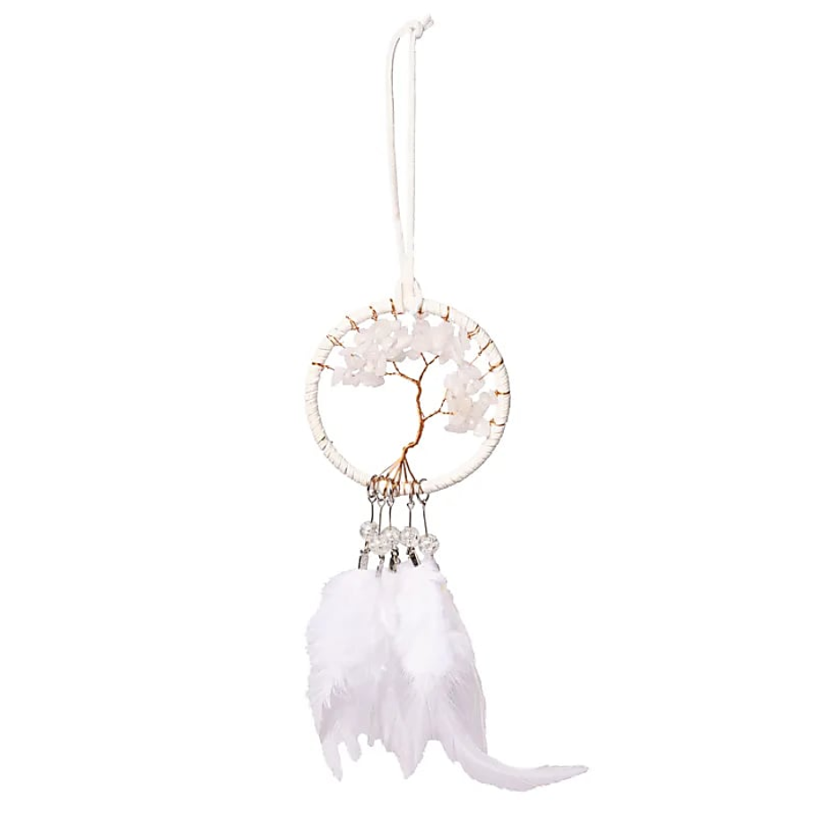 Draumafangarinn er skreyttur með hvítum jaspis en hann gefur ró, vernd og innri skýrleika.