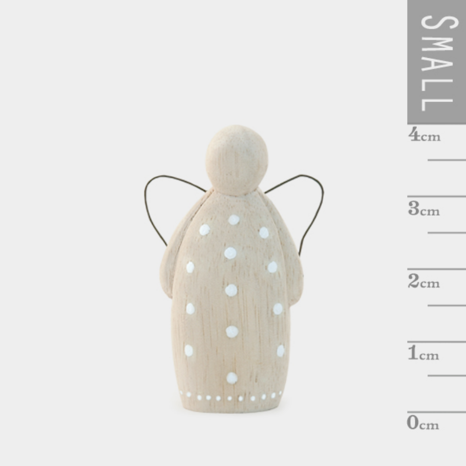 Mjög lítill og krúttlegur verndarengill með hvítum doppum.