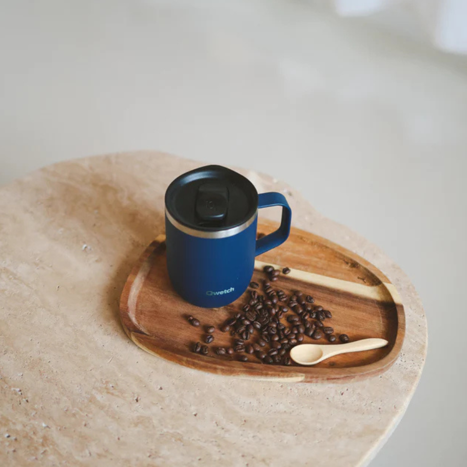 Ferðamál með handfangi og sem heldur bæði heitu og köldu. Bollinn er úr 90% endurunnu stáli og lokið á bollanum er með þægilegum sleða til að opna og loka drykkjaropinu.