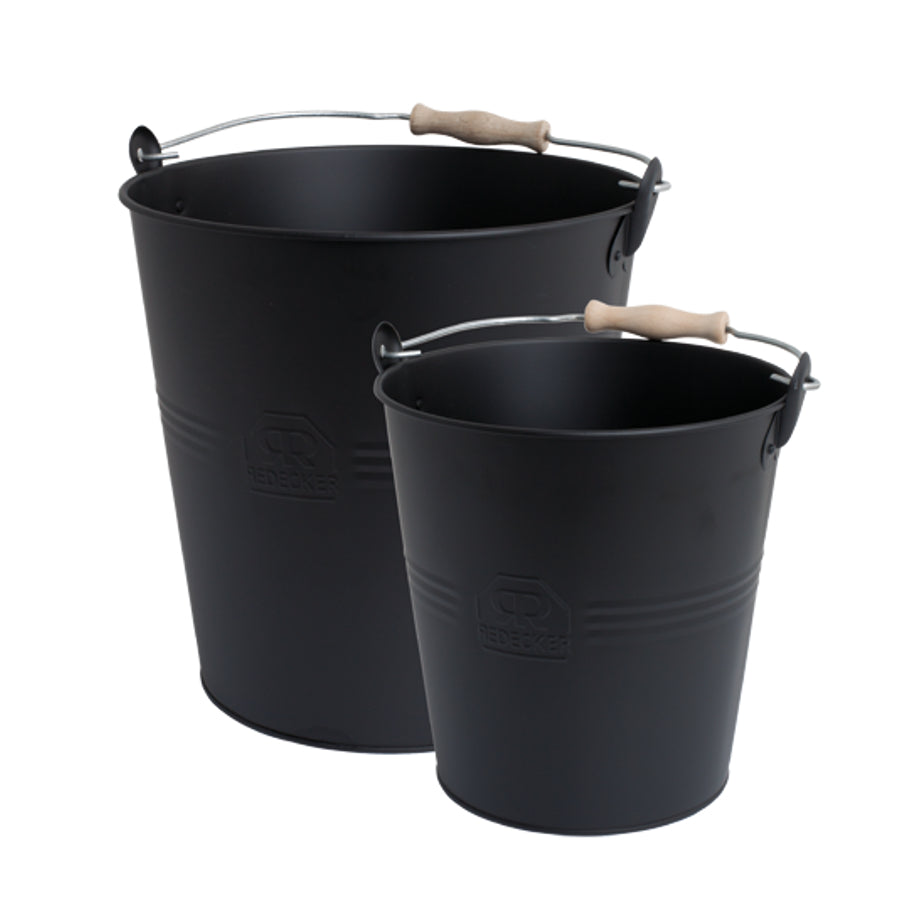 Tvær dásamlega fallegar svartar fötur úr málmi með viðarhandfangi.