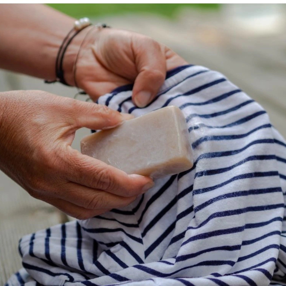 Notkun: Bleytið efnið þar sem bletturinn er, berið gallsápuna í og nuddið varlega. Látið bíða í u.þ.b. 15 mínútur og þvoið svo flíkina. Ef bletturinn þrjóskast við og fer ekki almennilega þá er bara að anda djúpt og endurtaka ferlið.
