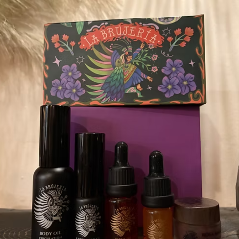 Dásamlega falleg gjafaaskja frá La Brújería með öllum vinsælustu vörunum þeirra. Askjan inniheldur Aztek spreyið, líkamsolíu, Asta Glow andlitsolíu, Aldur er galdur andlitsserum og rósa andlitsmaska.