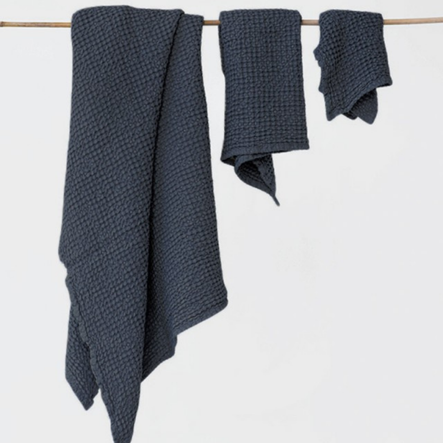 Púffý vöffluvefnaðurinn í handklæðunum eykur ekki aðeins rakdrægni handklæðanna heldur veitir hann húðinni líka mjúka þurrburstun um leið og þú þurrkar þér. Hör hefur örverudrepandi eiginleika frá náttúrunnar hendi. Þeir eiginleika ásamt vöffluvefnaðinum gerir það að verkum að handklæðið þornar hratt sem kemur í veg fyrir myglu, örverur og vonda lykt.