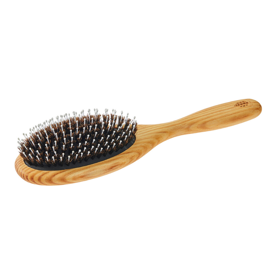Þessi fallegi hárbursti á uppruna sinn í Svartaskógi en þaðan kemur viðurinn -furan í burstanum, furan er olíuborin. Burstinn er með stífum og góðum villisvínahárum og nælonpinnum sem fest eru í gúmmípúða.