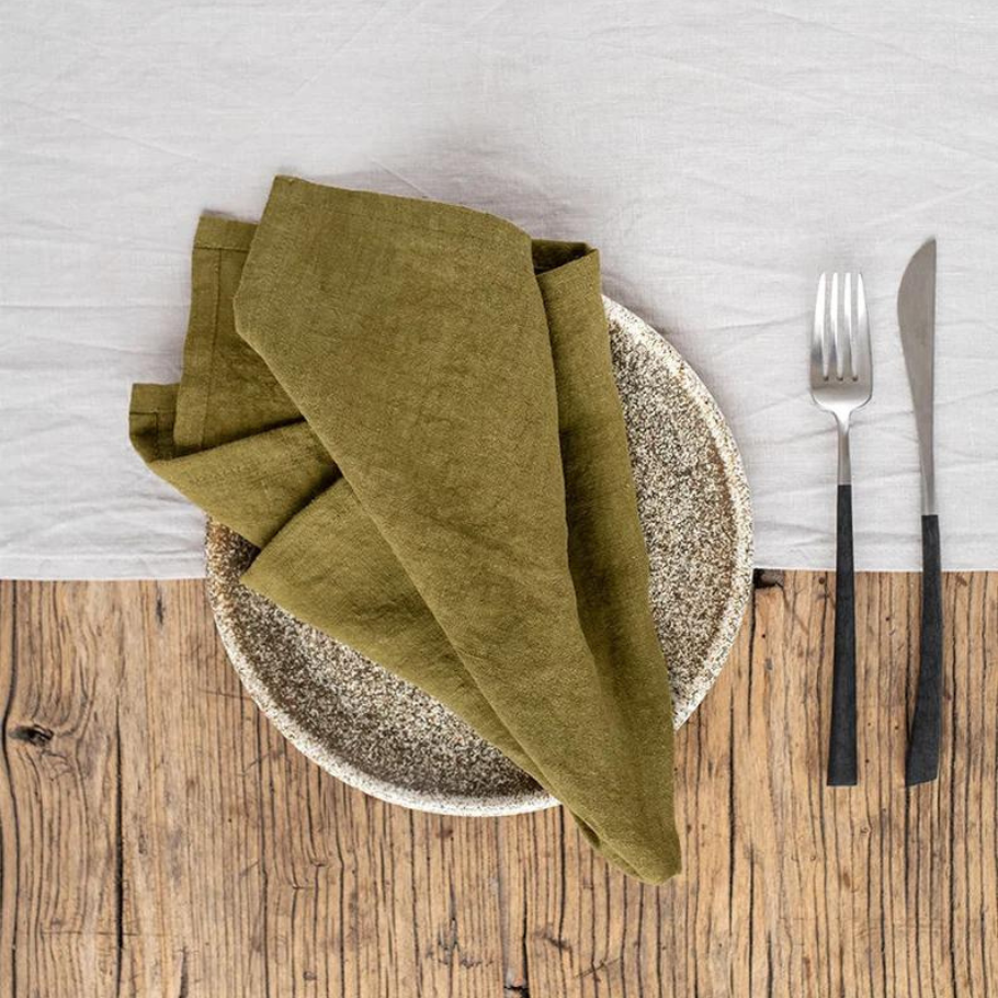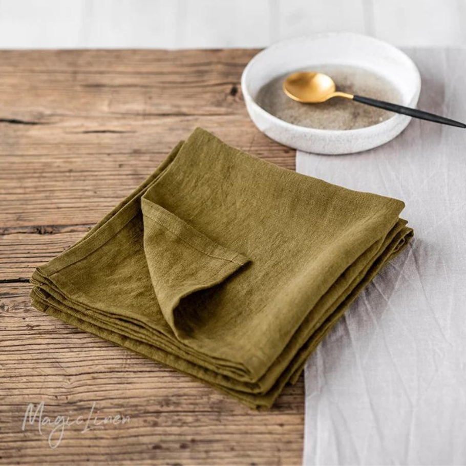 Hör servíettur, 46x46 cm. Ólífu grænar. 2 stk.