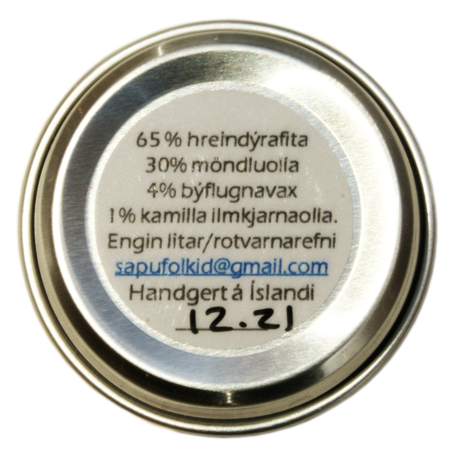 Innihald: Hreindýrafita (65%), möndluolía (30%), búflugnavax (4%) og kamillu ilmkjarnaolía.