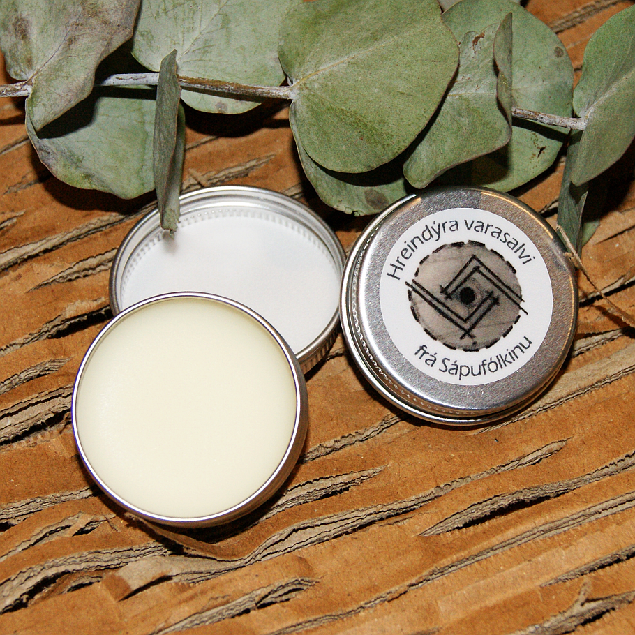 Alíslenskur varasalvi sem er handgerður á Íslandi. Í salvan er notuð hreindýrafita sem annars hefði farið í urðun, möndluolía og býflugnavax, ásamt kamillu ilmkjarnaolíu.