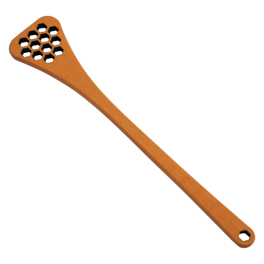Einstaklega fallegt áhald til að laða hunangið upp úr krukkunni, úr fallegum peruvið og með hunangsköku mynstri.