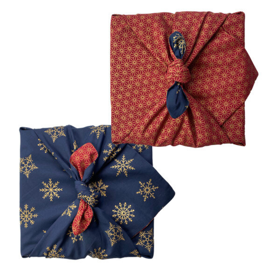 Innpökkunarklútur - Furoshiki - tvöfalt efni, miðnæturblátt og ruby rautt