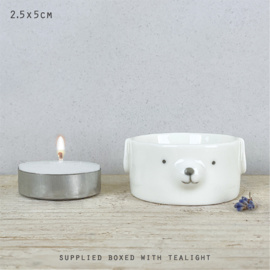Lítill og einstaklega sætur kertastjaki úr postulíni fyrir teljós, eitt kerti fylgir með.