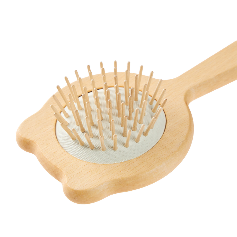 Einstaklega fallegur, handgerður hárbursti með viðarpinnum fyrir yngstu kynslóðina sem gerir hárburstunina að ánægjulegri samverustund. Passar vel í litlar hendur.