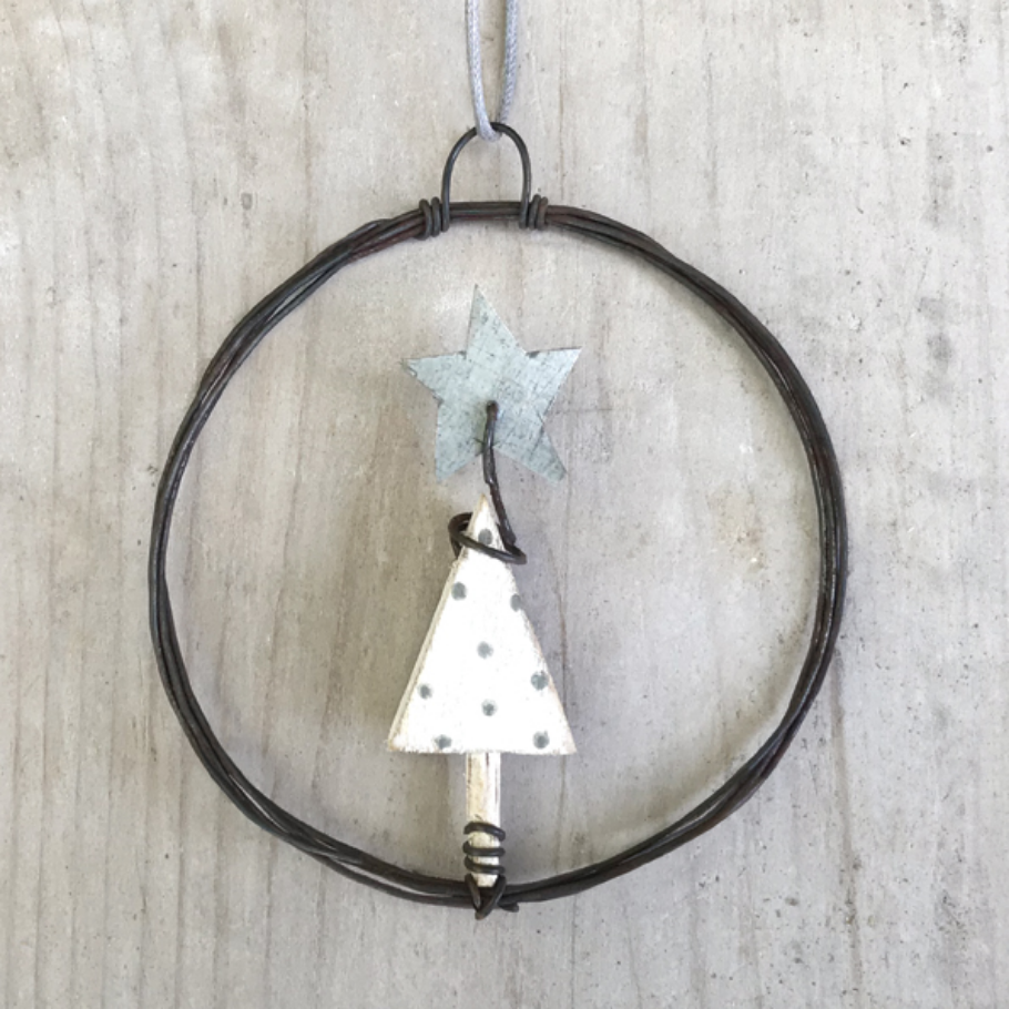 Lítill og minimalískur krans úr endurunnum og ómeðhöndluðum vír, Sómir sér vel einn sér eða í stærri hóp.