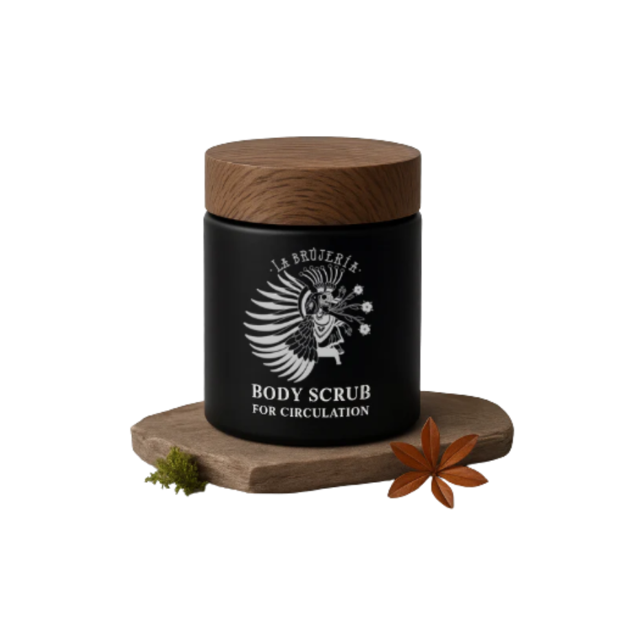 Líkamsskrúbbur frá La Brújería sem örvar blóðflæði fram í húðina. Jurtirnar í skrúbbnum geta verið hjálplegar í hreinsun og henta vel fyrir ýmis húðvandamál.