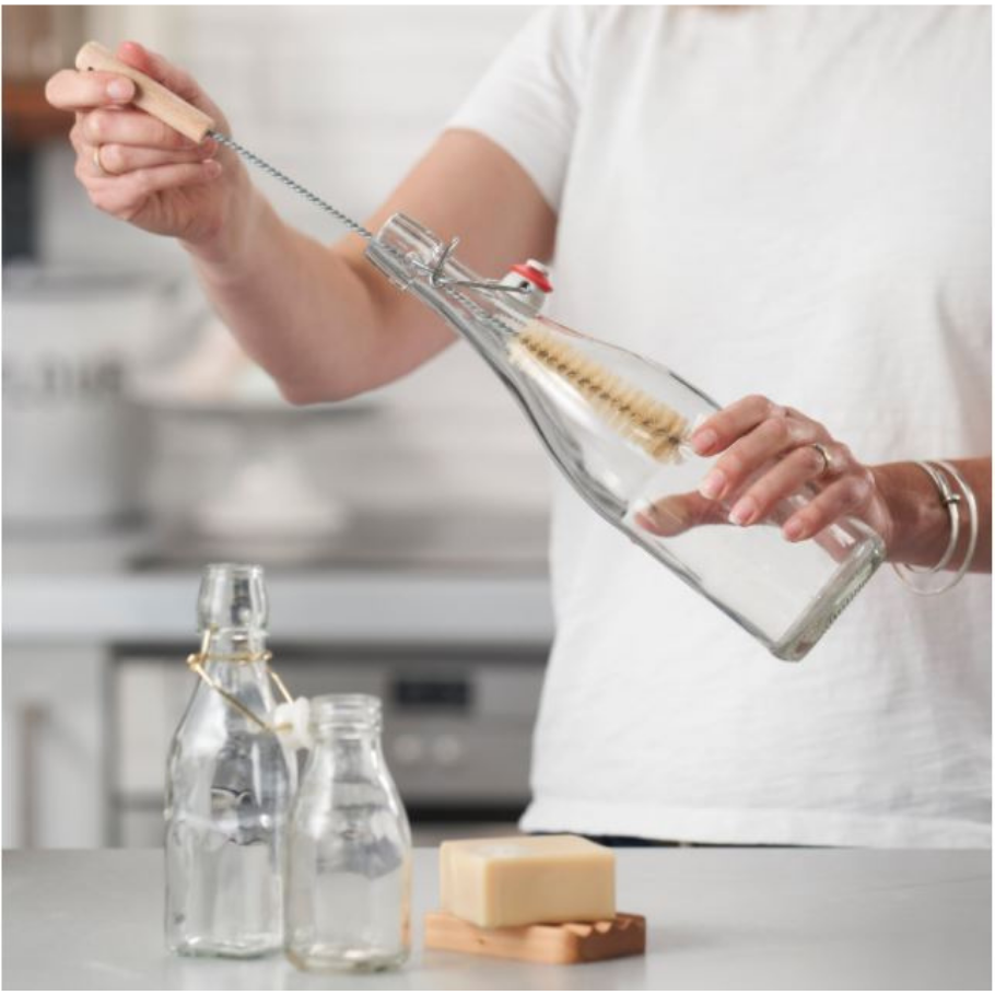 Langur og mjór flöskubursti fyrir flöskur með mjóum hálsi. Burstahárin eru úr tampíkó trefjum og viðarhandfangið úr FSC vottuðu beyki.