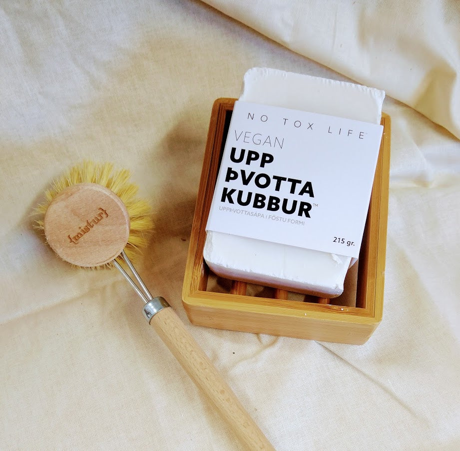 Í þennan fallega sápustand er notaður Moso bambus. Standurinn smellpassar fyrir Uppþvottakubbinn og að sjálfsögðu má einnig nota hann fyrir allar aðrar sápur.