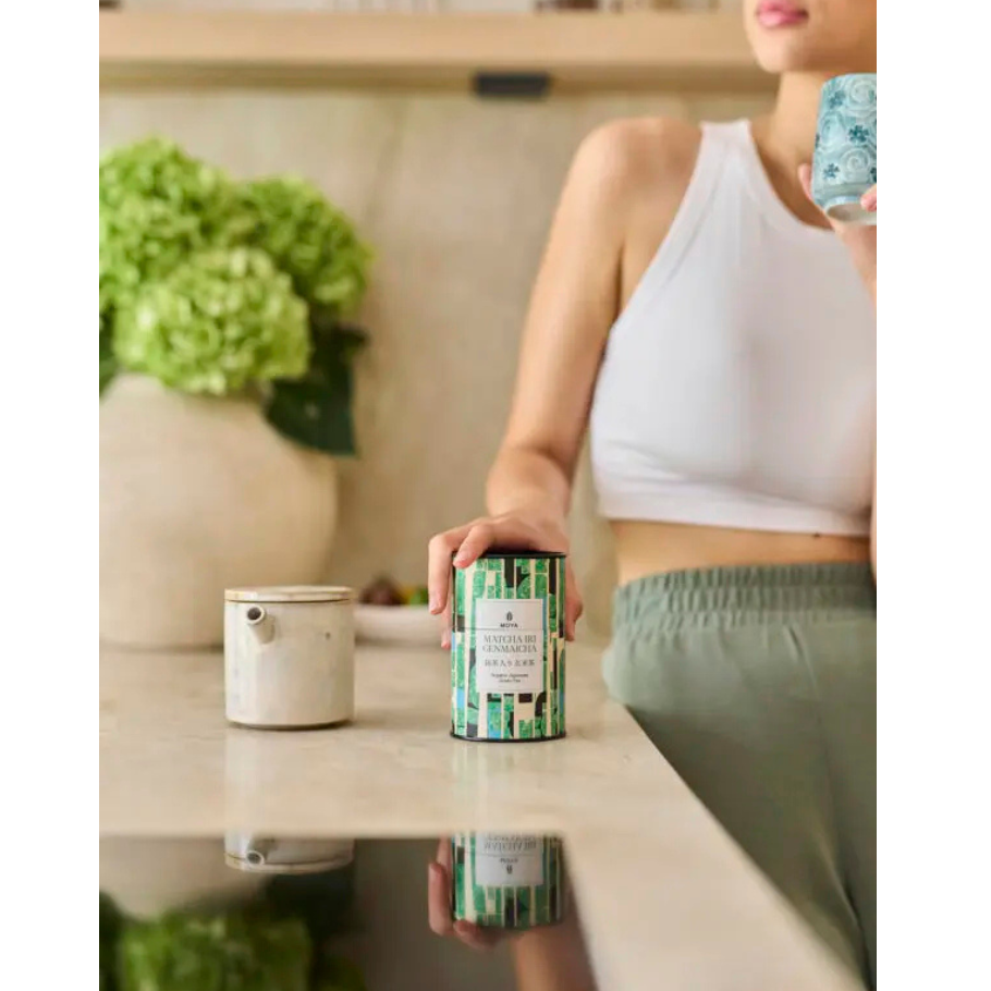 Moya Matcha Iri Genmaicha inniheldur fíngerð lífræn Sencha lauf, ristuð lífræn brún hrísgrjón (sem á japönsku eru kölluð „genmai“) og lífrænt Matcha Daily. Bragðið af Matcha Iri Genmaicha er mjúkt og minnir á sætt, ferskt smjör með sterkum umami sjávar keim. Sannkölluð veisla fyrir bragðlaukana.
