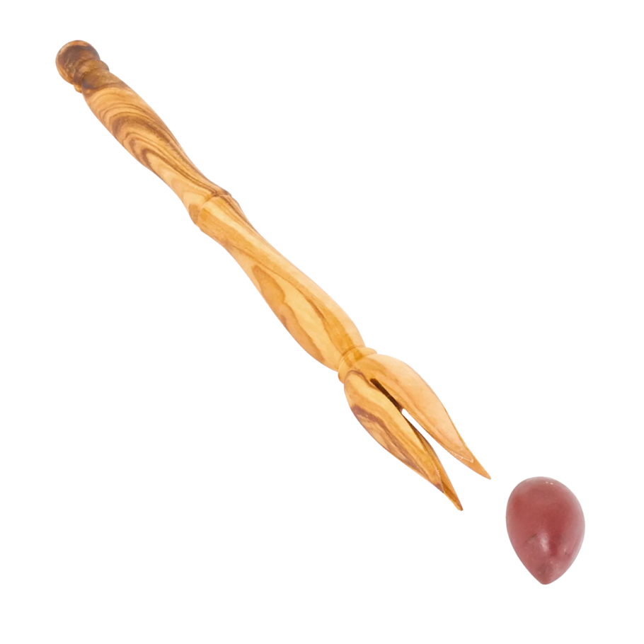 Ólífuviðurinn er náttúrulega harður vegna hægs vaxtar trésins og inniheldur hátt hlutfall olíu sem gerir það að verkum að viðurinn hrindir frá sér raka og gaffallinn er mjúkur í hendi. Viðurinn er einungis olíuborinn og ekki meðhöndlaður neitt frekar. Við mælum ekki með að setja ólífugaffalinn í uppþvottavél heldur að þvo hann með mildri sápu og mjúkum bursta og þurrka eftir notkun. Til að varðveita fegurð viðarins mælum við með að nudda gaffalinn af og til með einfaldri ólífu- eða sólblómaolíu og láta hana þorna vel.