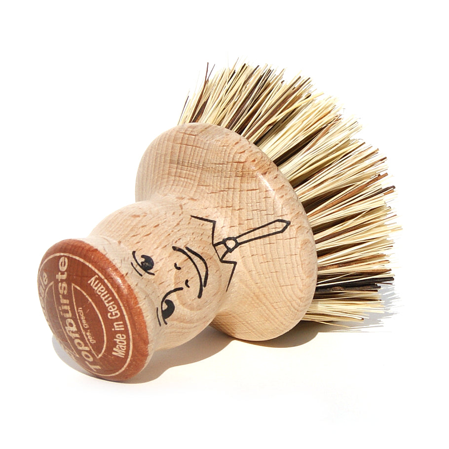 Skemmtilegur pottaskrúbbur úr ómeðhöndluðu beyki og union fiber burstahárum. Stífur og góður.