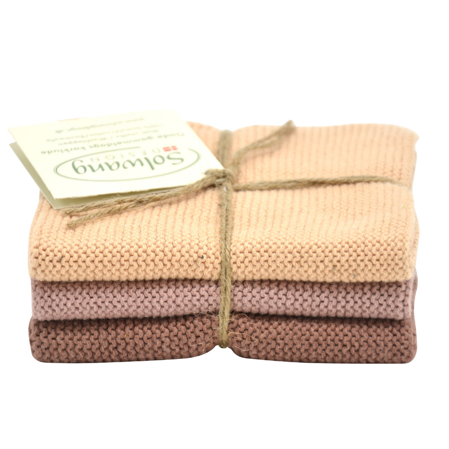 Solwang prjónuð borðtuska, brúnt kombó 25x25 cm. 3 stk.