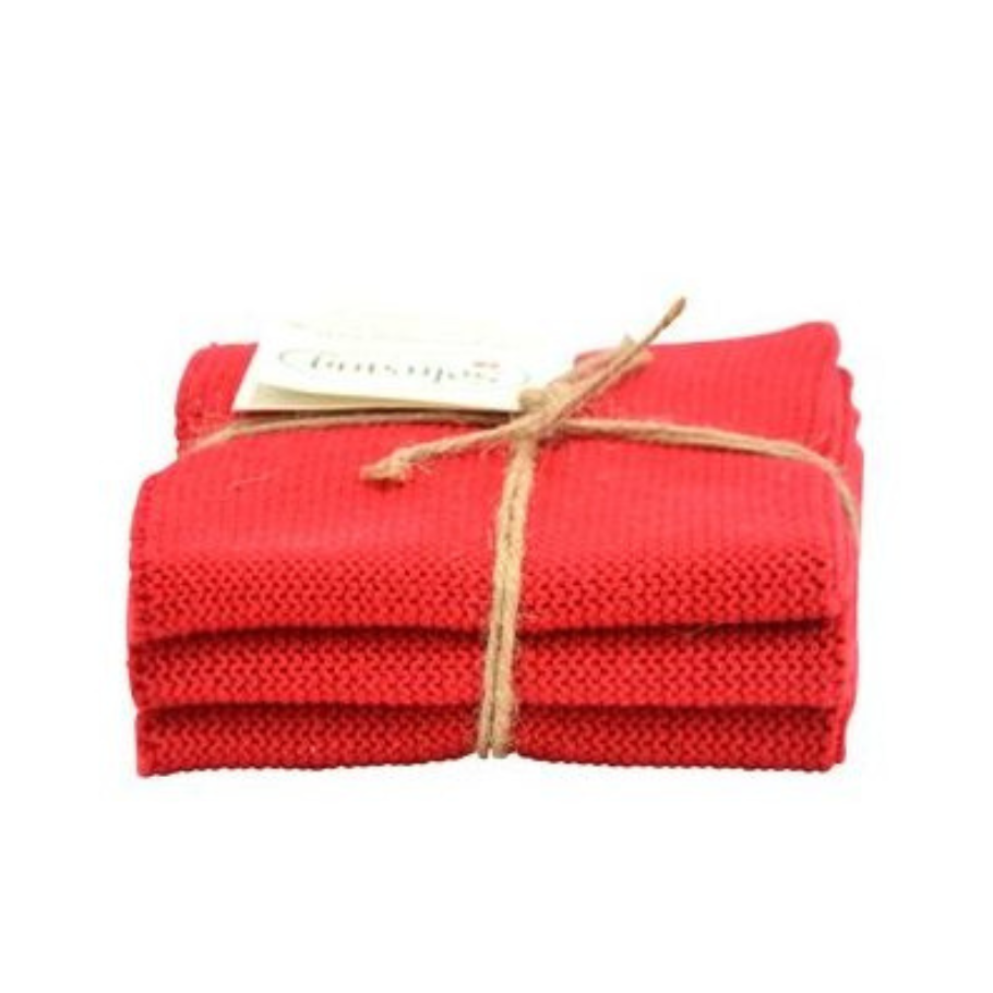 Solwang prjónuð borðtuska, hlýtt rautt combo 25x25cm. 3 stk