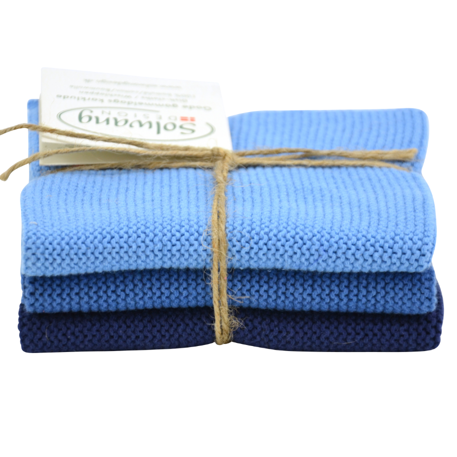 Solwang prjónuð borðtuska, musku blá 25x25 cm. 3 stk.