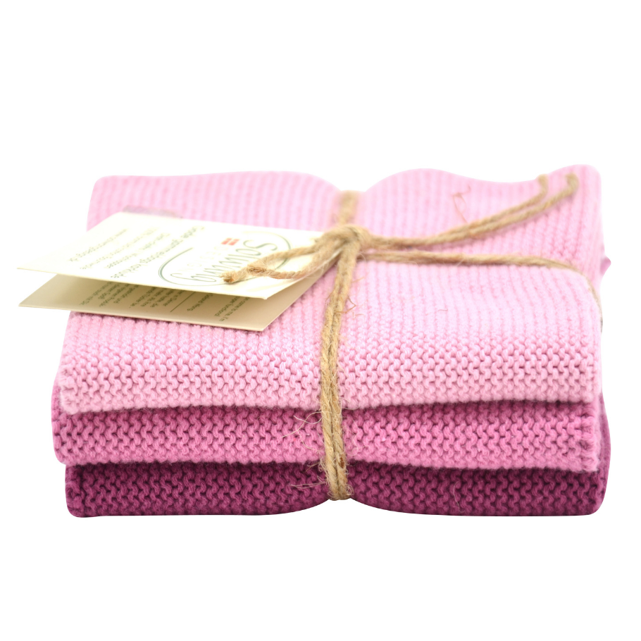 Solwang prjónuð borðtuska, plómu kombó 25x25 cm. 3 stk.