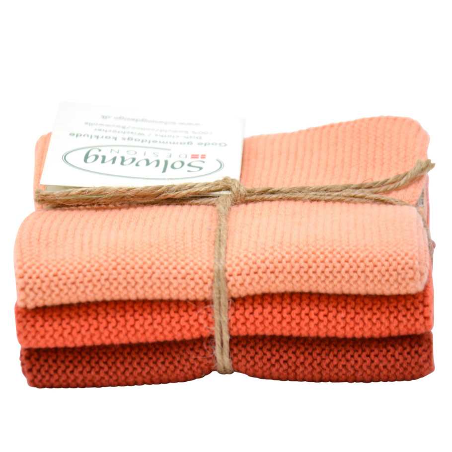 Solwang prjónuð borðtuska, terrakotta kombó 25x25 cm. 3 stk.