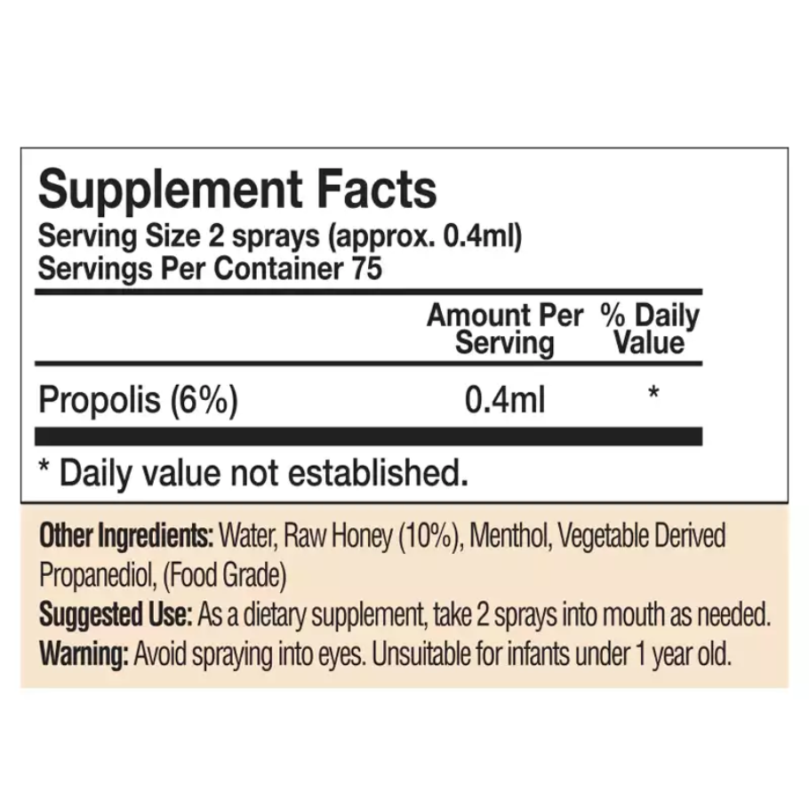 Hálsspreyið frá Bee&yo er 100% náttúrulegt og inniheldur aðeins fimm hráefni: Propolis frá Anatóliu, hrátt hunang, mentol, eimað vatn og propandiol úr jurtaríkinu.
