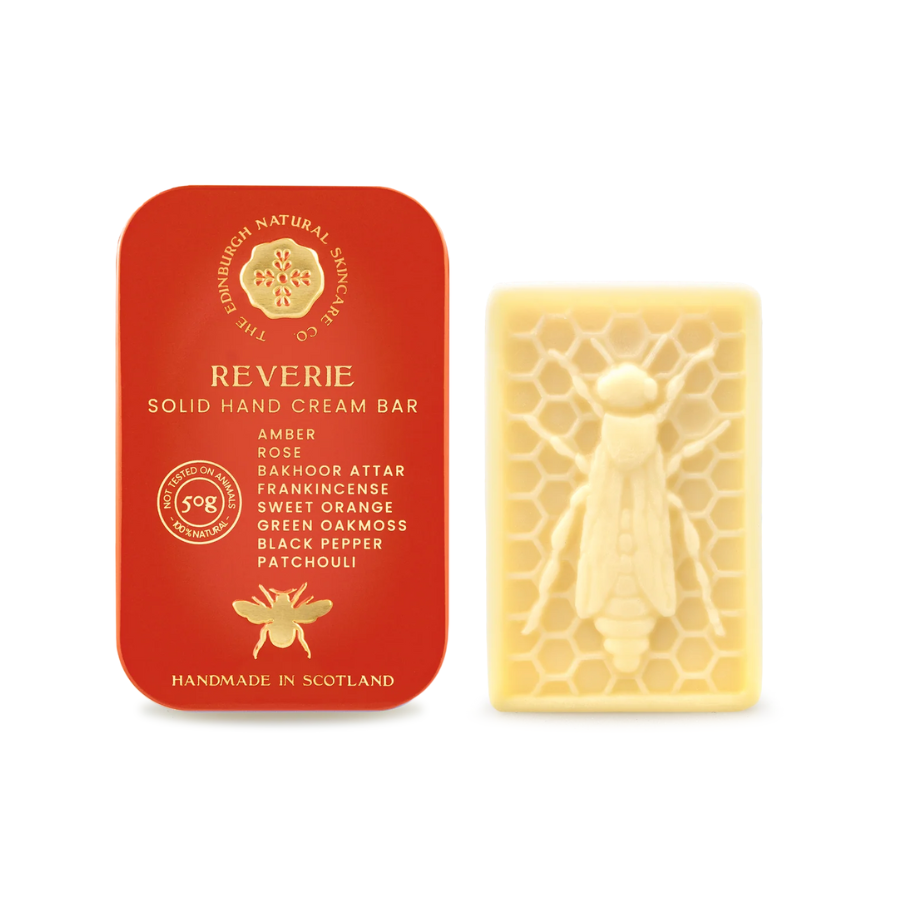 The Queen Bee handáburðurinn er í föstu formi og framleiddur úr bestu náttúrulegu innihaldsefnunum sem endurnýja og vernda hendurnar frá úlnlið og fram í fingurgóma. Handáburðurinn kemur í fallegri, léttri og endurnýtanlegri málm öskju. Hann er einfaldur og snyrtilegur í notkun, þægilegur að ferðast með og gott að vera með á sér til að mýkja og vernda hendurnar.