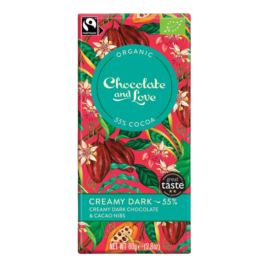 Rjómakennt dökkt súkkulaði með kakó nibbum - 55%, Chocolate and Love, lífrænt
