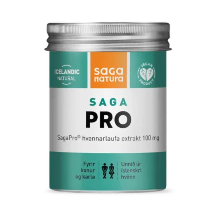 SagaPro er íslensk náttúruvara sem inniheldur handtínda íslenska hvönn, en hvönnin hefur verið ein merkasta lækningajurtin í NorðurEvrópu í mörg hundruð ár. Virka efnið í vörunni er unnið úr íslensku ætihvannarlaufi og hefur hún verið rannsökuð í yfir 25 ár af vísindamönnum Saga Natura. Lauf ætihvannarinnar er eini hluti plöntunnar sem hefur sýnt bein áhrif á fækkun þvagláta.