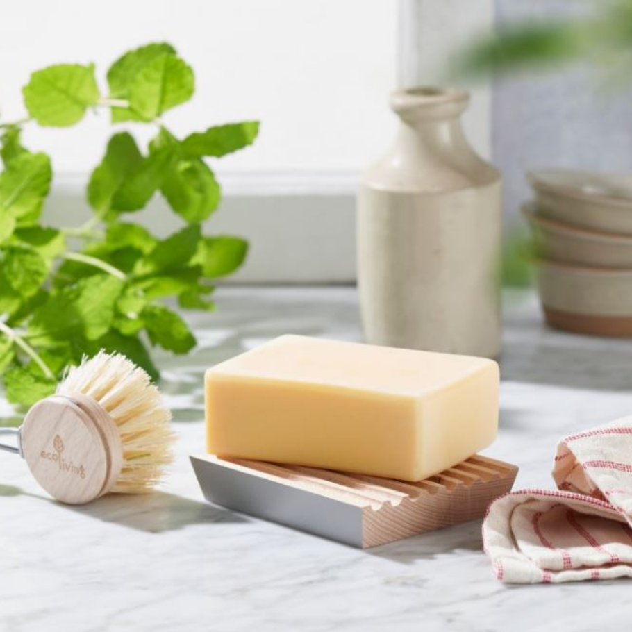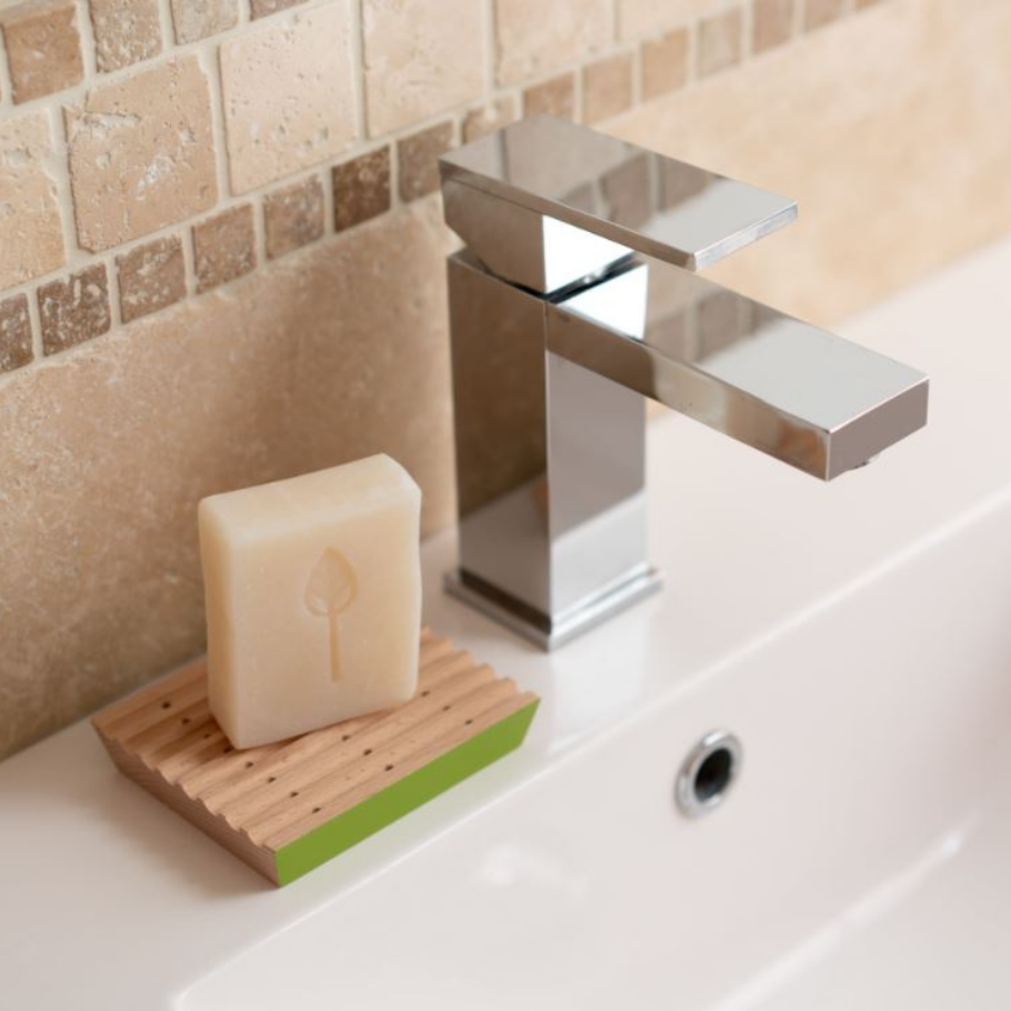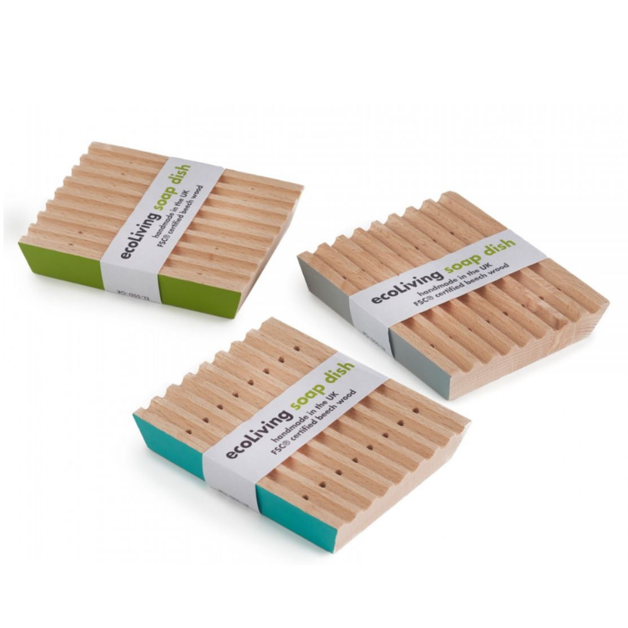Sápudiskur með rifflum úr FSC vottuðu beyki, handgerður í litlu magni í Bretlandi. Handmálaður á tveimur hliðum. Á disknum eru göt svo að umfram vatn drjúpi af sápunni sem eykur endingartíma hennar.
