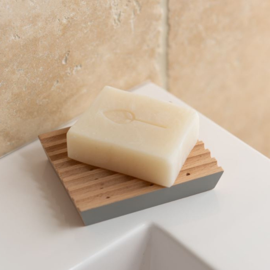 Sápudiskur með rifflum úr FSC vottuðu beyki, handgerður í litlu magni í Bretlandi. Handmálaður á tveimur hliðum. Á disknum eru göt svo að umfram vatn drjúpi af sápunni sem eykur endingartíma hennar.