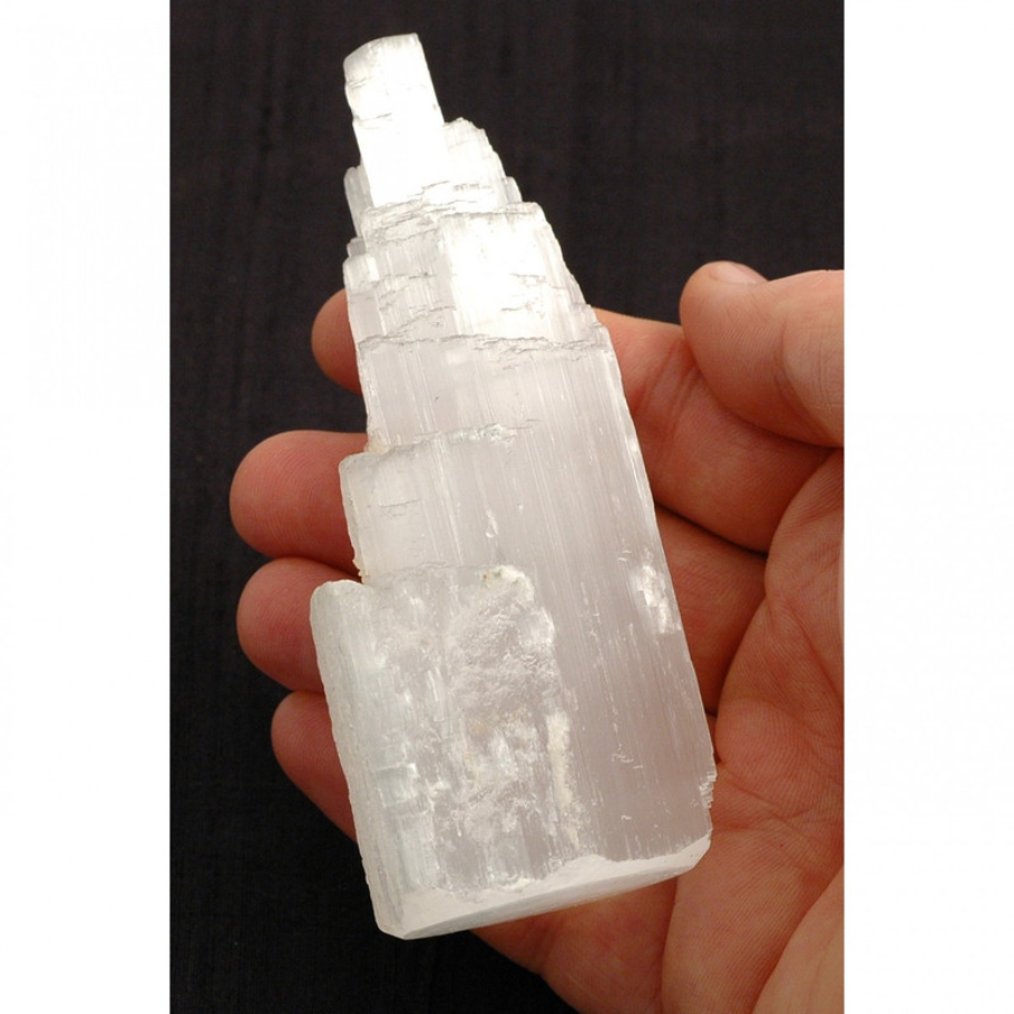Selenite kristall hefur tíðni tunglsins og englanna og ber með sér ró, frið og jafnvægi. Gott er að nota þennan kristal í hugleiðslu til að hjálpa við tengingu við æðri mátt.