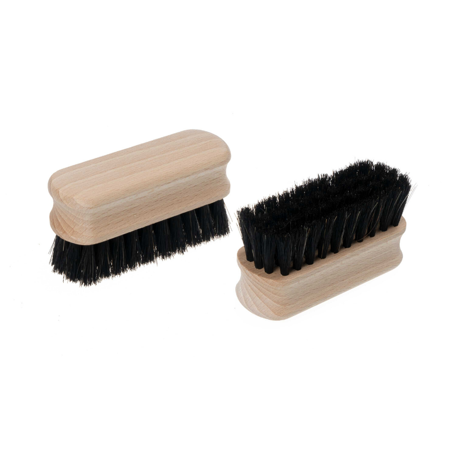 Góður skóbursti með þægilegu handfangi. Lítill og netur og hentar vel í ferðalög. Burstinn er úr ómeðhöndluðu FSC 100% beyki og svörtum hrosshárum.