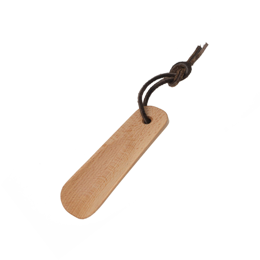Lítið og mjög nett beyki skóhorn sem m.a. væri hentugt að taka með í ferðalög. Í skóhorninu er leðuról þannig að auðvelt er að hengja það upp.