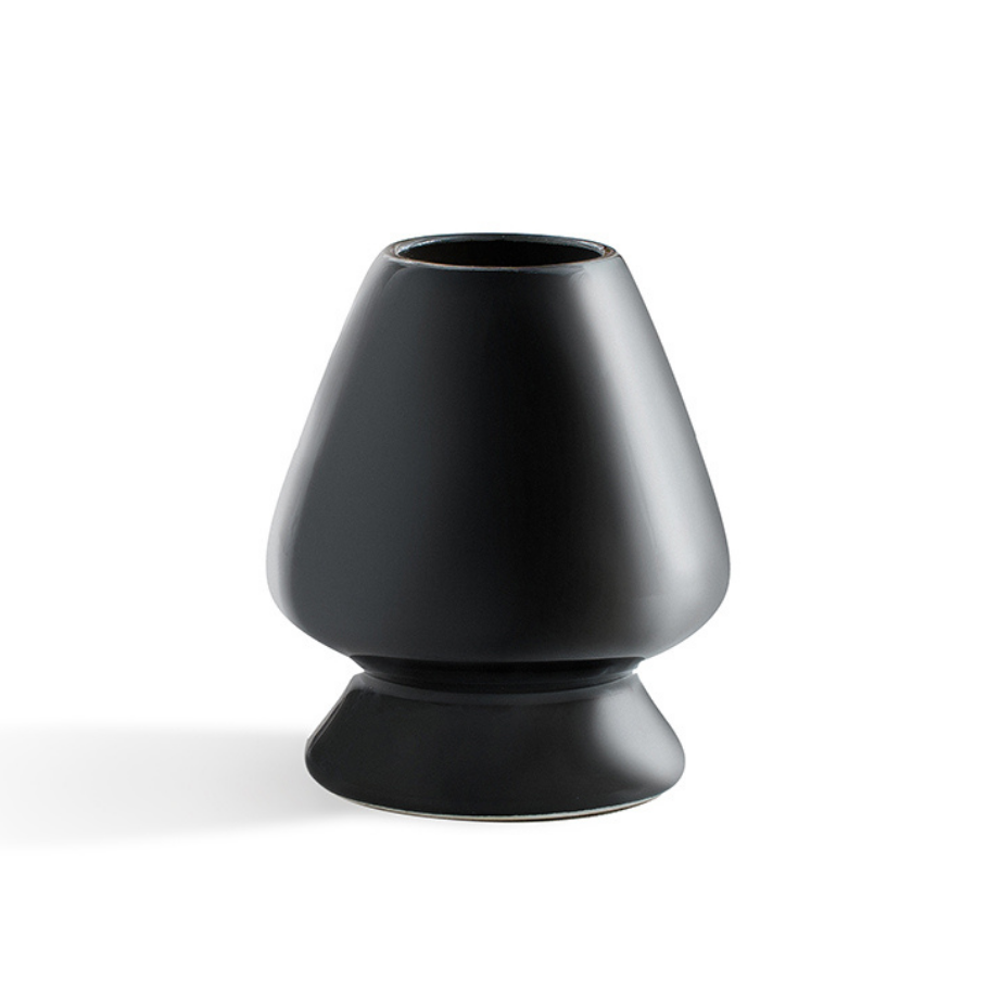 Fallegur standur úr steinleir með svörtum glerung fyrir matcha bambuspísk.
