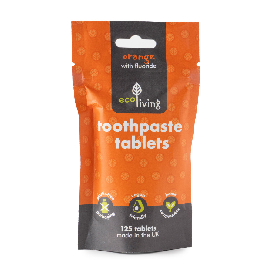 Tannkremstöflur með mjög mildu appelsínubrgaði, með flúor, 125 stk.