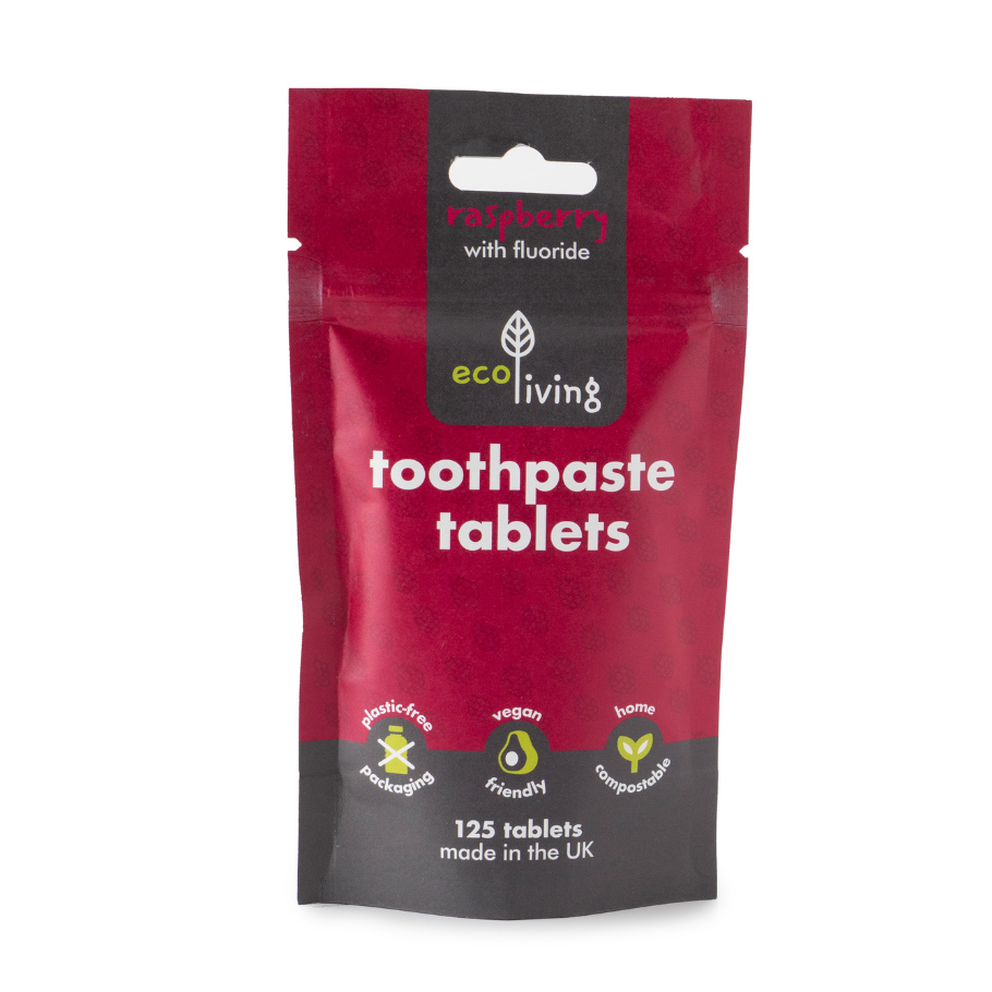 Tannkremstöflur með mjög mildu hindberjabragði með flúor, 125 stk.