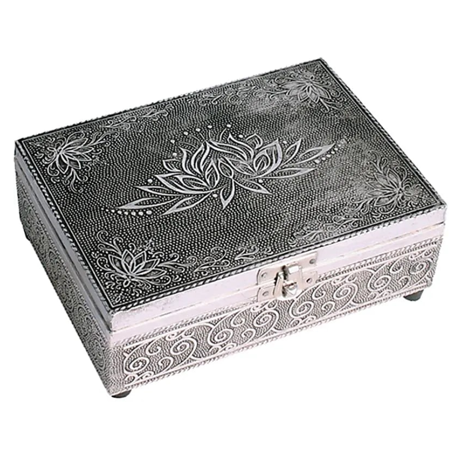 Fallegt skrín með Lotus blómi á lokinu, tilvalið undir Tarotspil, kristalla eða skart.